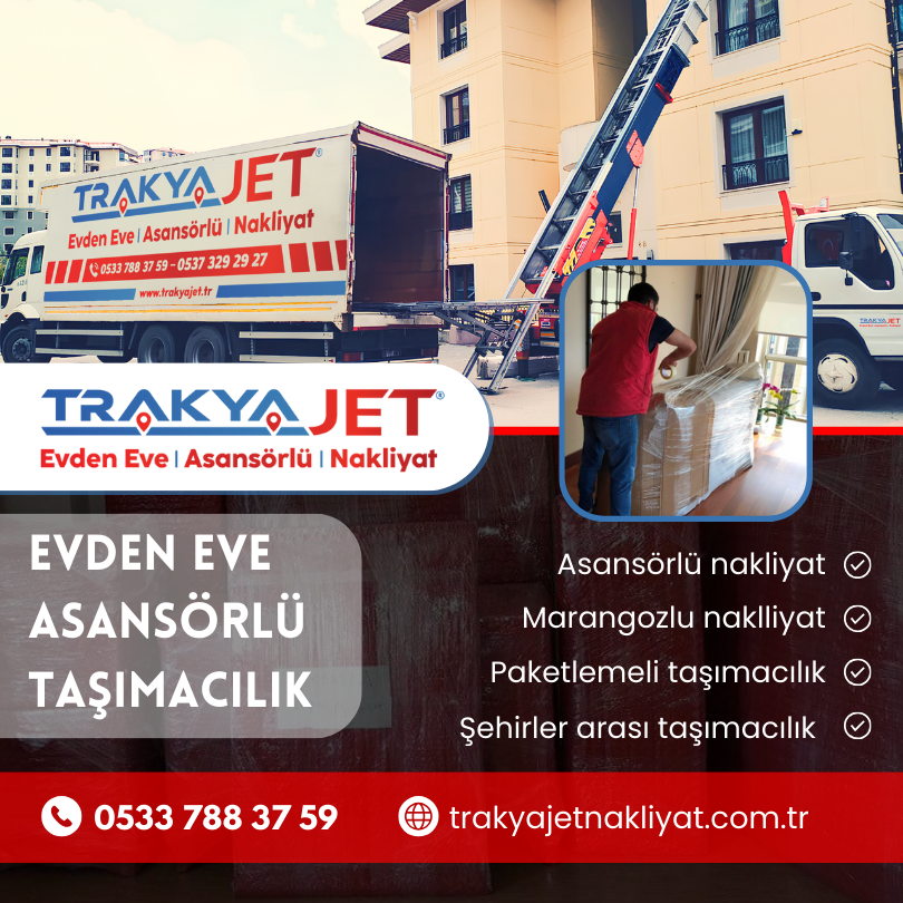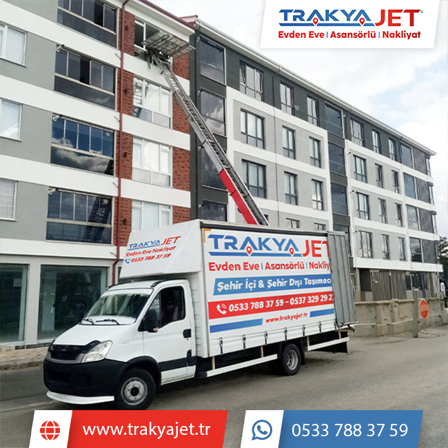 TrakyaJet ile asansörlü nakliyat sayesinde eşyalarınız hızlı ve güvenli taşınıyor. Yüksek katlarda oturanlar için ideal çözüm! Eşyalarınızı sorunsuzca yeni adresinize ulaştırıyoruz.